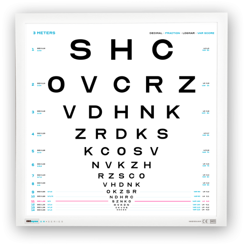 En syntavle med bokstaver, designet for bruk i synstesting for voksne. Synstesten er en videreutvikling av ETDRS-tegnsettet og er erstatningen for Snellen-tegnsettet.